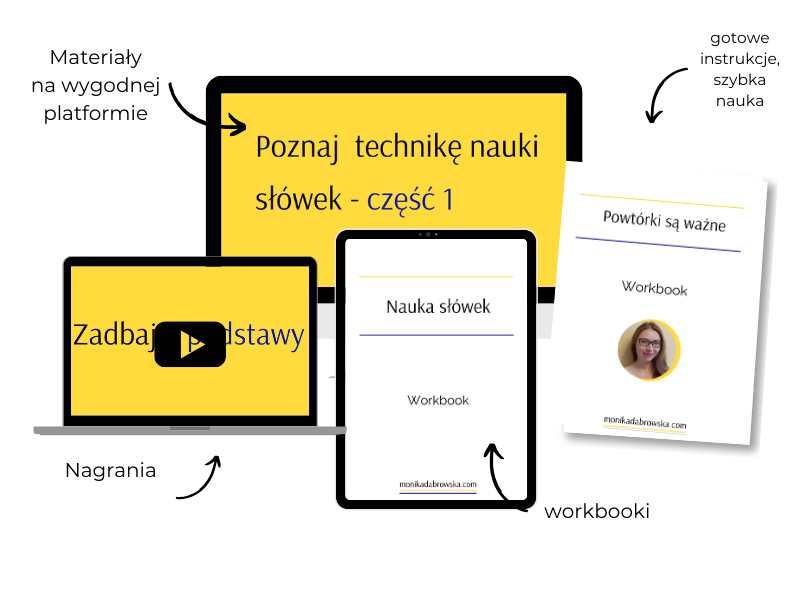 Dlatego, jeżeli kiedykolwiek miałeś trudności z nauką słownictwa w języku niemieckim, to zapraszam Cię do skorzystania z mini-kursu „Zapamiętaj 20 najpopularniejszych rzeczowników w języku niemieckim szybko i skutecznie”. Nauczysz się w nim krok po kroku niezwykle efektywnej techniki nauki słówek. Dzięki instrukcjom i workbookom będziesz potrafił przypomnieć sobie nauczone według techniki słowo w potrzebnym dla Ciebie momencie. Zyskasz przez to większą pewność siebie i swobodę w posługiwaniu się językiem niemieckim, a co więcej – odkryjesz radość z nauki języka i zaoszczędzisz sporo czasu na nauce. Niemniej ważnym jest fakt, że nabyte na tym kursie umiejętności będziesz mógł